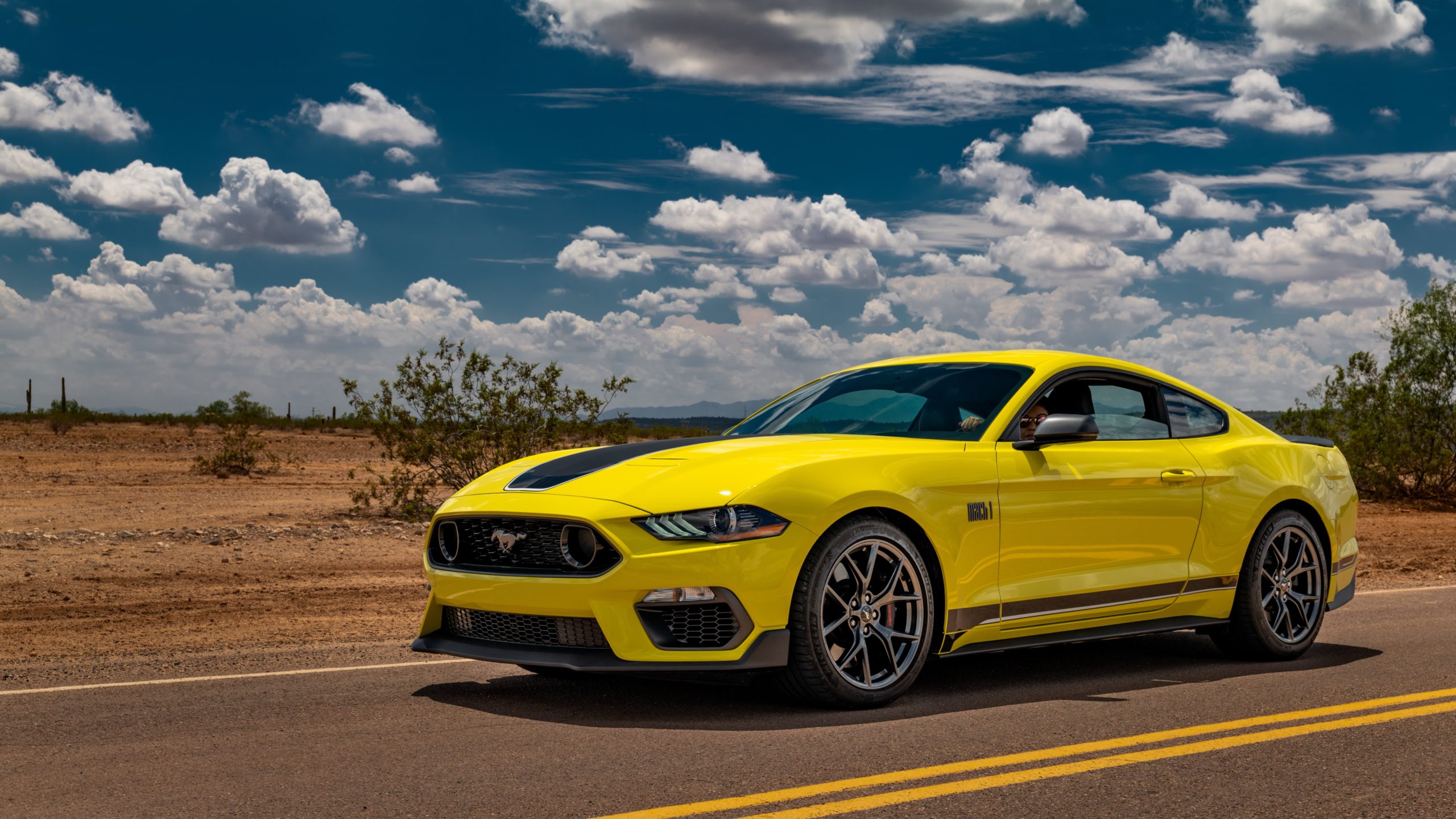 Nuestro modelo de pruebas tenía el cambio automático de 10 velocidades con paletas de cambio y modo deportivo, pista, drag race. En la conducción que hicimos en Arizona, esto hizo que el vehículo fuera mucho más práctico, y creemos que también agradable. Las relaciones de cambio de la 10ª velocidad del Mach 1 Premium difieren de las del GT.