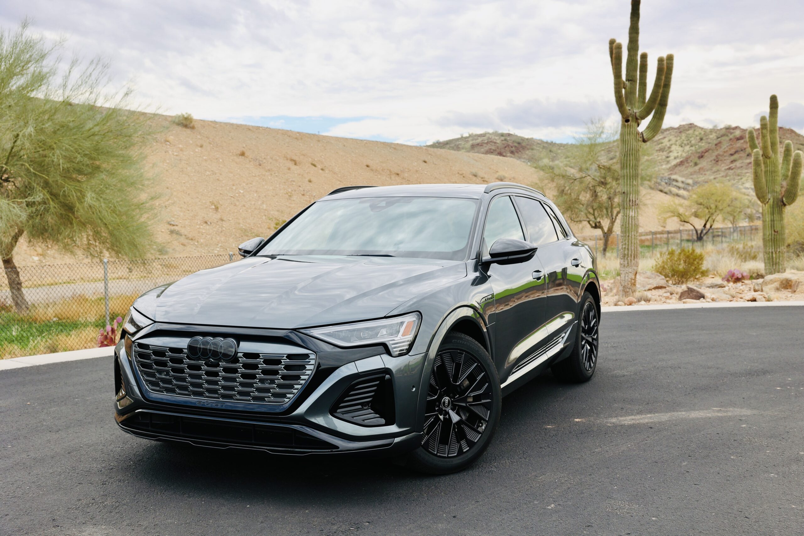 Despite the desert’s typically dry climate, winter in Arizona has been quite wet this year. However, those weather conditions did not stop us from experiencing the thrill of driving the 2024 Audi Q8 e-tron. This state-of-the-art vehicle boasts impressive features, such as its electric-powered motors and Audi quattro all-wheel drive, allowing us to navigate easily through the wet terrain. The ability to get wet and dirty is always a remarkable experience, and we fully appreciate the power and performance of this car. Was it exceptional? Let’s get into it.
