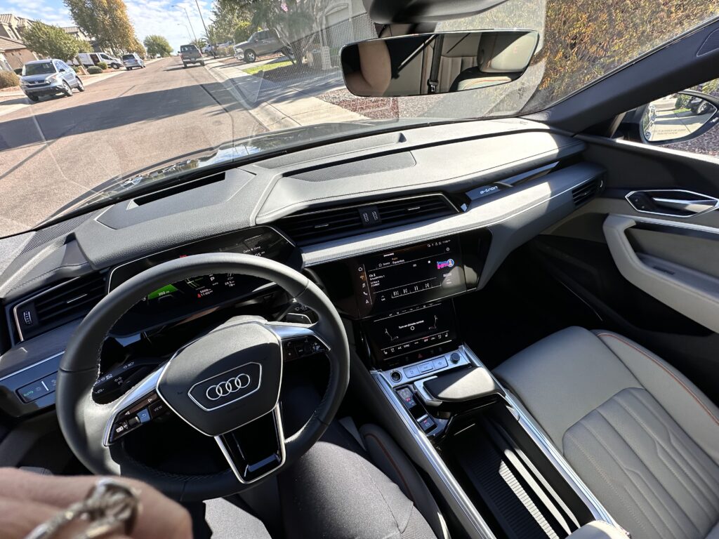 Think of the Q8 e-tron as a mostly rear-wheel drive SUV that only draws front-wheel power when traction and road dictates demand it. Going from front to rear was a smooth operation that we never really felt while it was working. What the e-tron didn’t have that we hoped it did was the opportunity to use “one pedal” driving. That’s where the vehicle goes into braking mode as soon as you lift your foot from the accelerator.