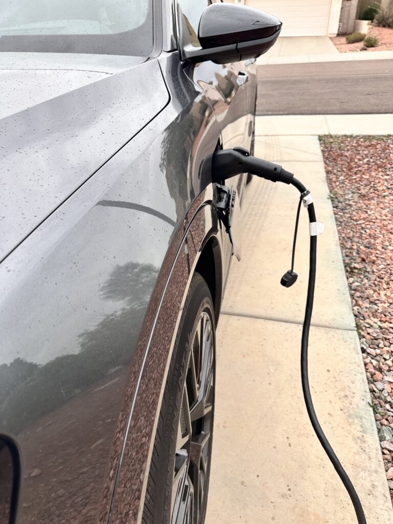 The Q8 e-tron has a revised range of approximately 285 miles per charge. Using a DC fast charger, charge times estimates will allow going from 10 percent to 80 percent in just over 30 minutes. Charging at home is naturally slower, though. Using a 120-volt household outlet and portable charger, It took us seven hours to charge from 150 miles to 170 miles. We recommend either adding a 240-volt/Level 2 charger or taking advantage of the two-year Electrify America DC fast charging bonus included with purchase of the e-tron. That’s only if your local E/A charger is working and fully functional.