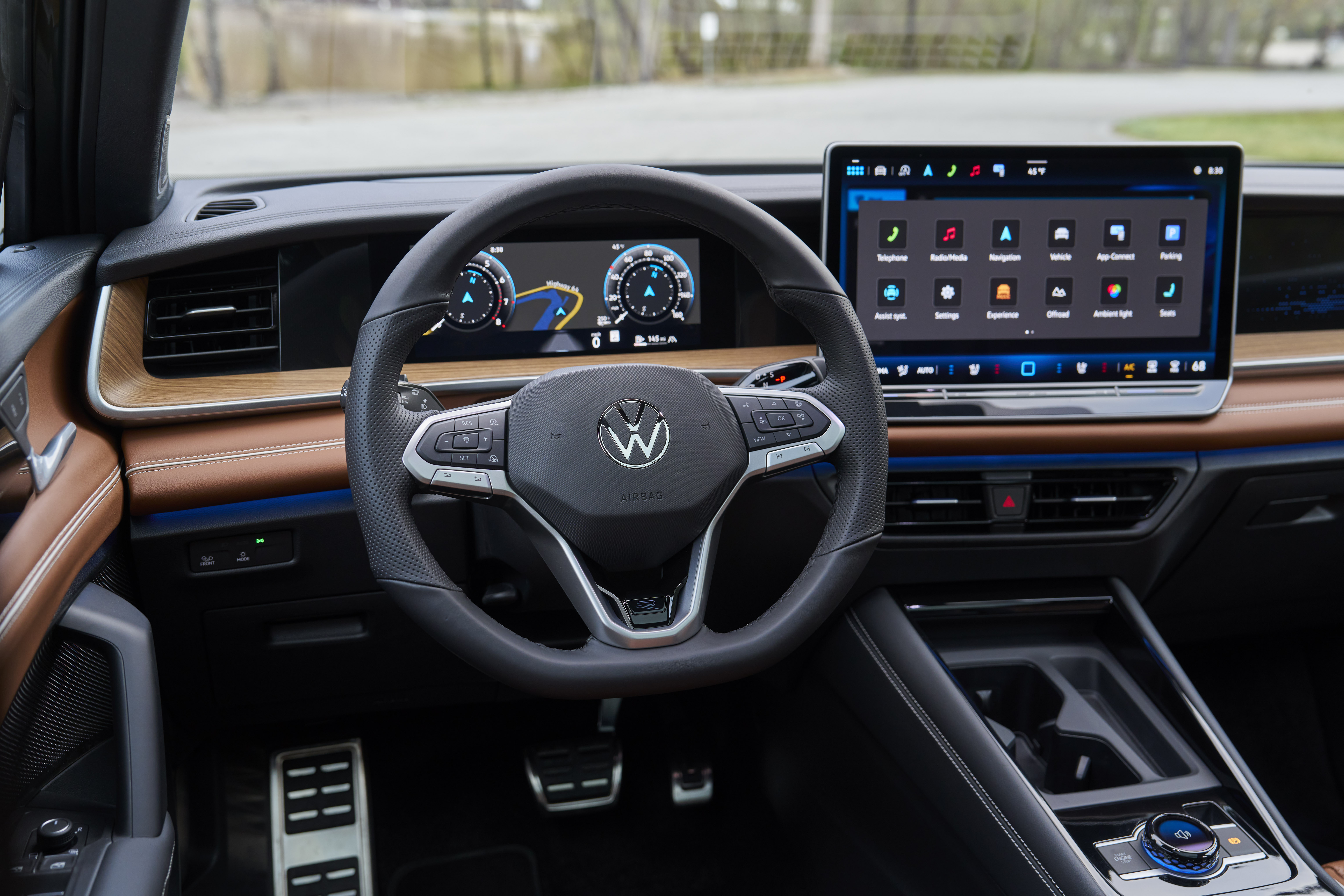 Step inside the Tiguan, and it immediately feels thoughtfully designed. The SEL R-Line trim adds just the right touch of luxury — from the soft leather seats to the sporty flat-bottom steering wheel that practically whispers “girl boss.” The new digital cockpit feels clean and intuitive, with just enough tech to make your drive seamless, not stressful.
