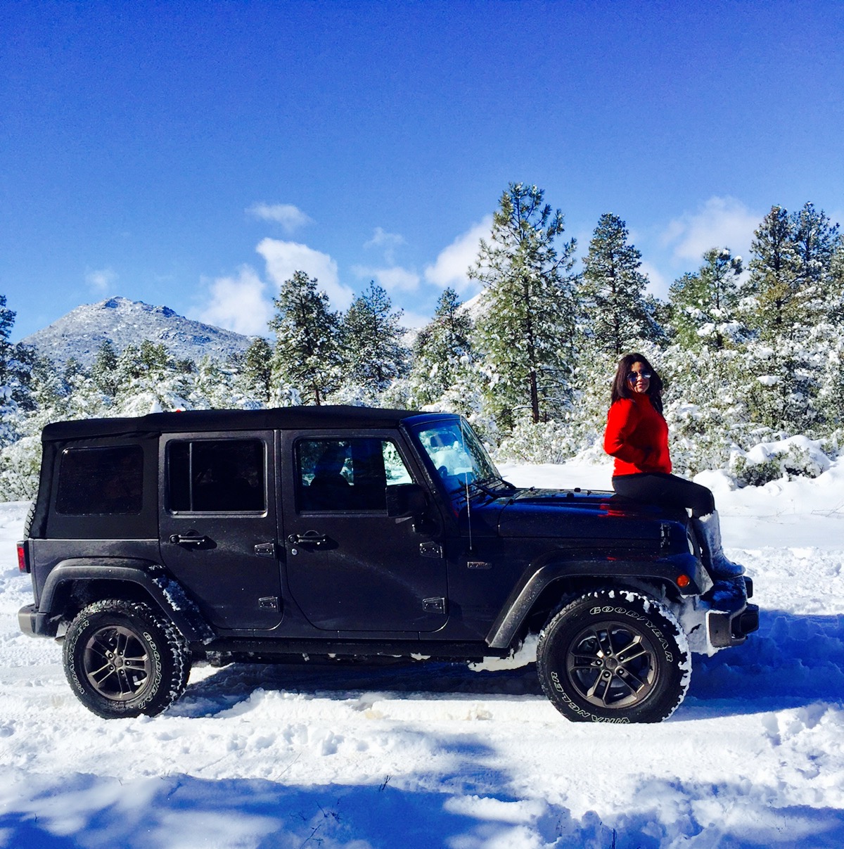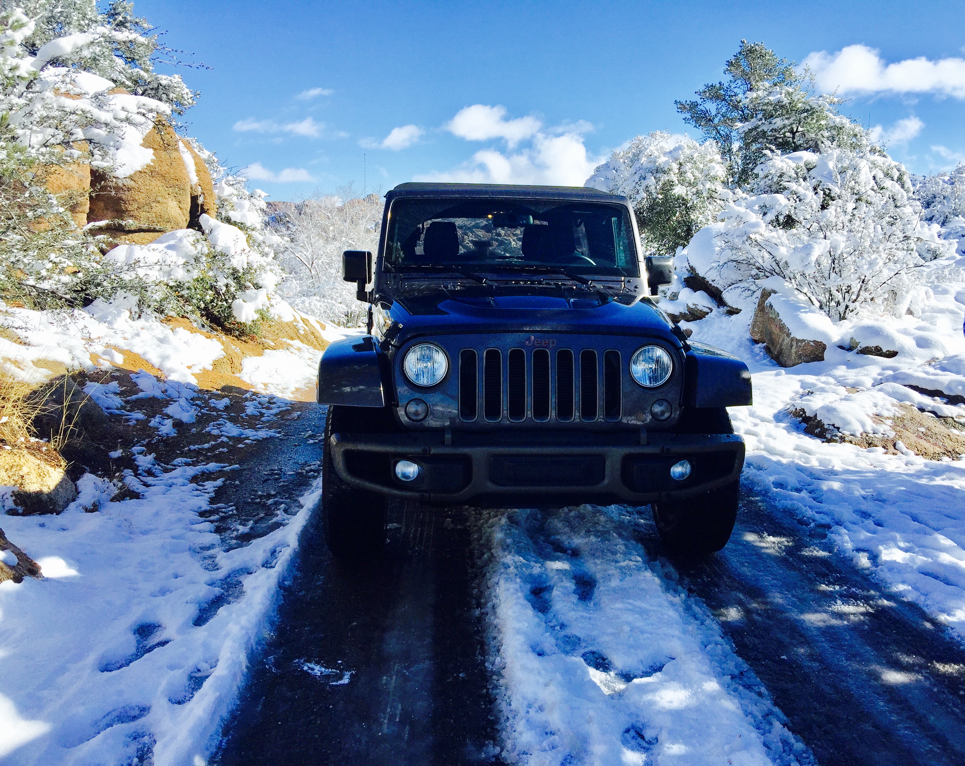 Christmas Day I drove up to Northern Arizona in pursuit of snow and adventure, with its command-Trac 4×4, heavy duty suspension with gas shocks you can drive the Jeep Wrangler in any terrain. Water, Mud, Sand, Rocky hills and snow are simply no match for the Jeep.