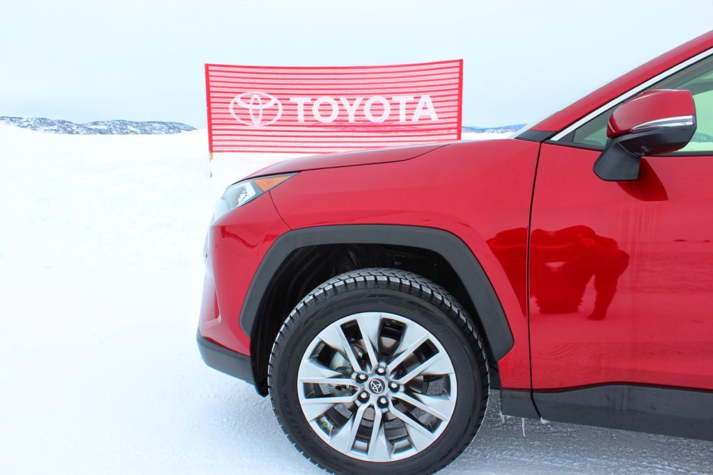 Bueno ahora ponemos la teoría en práctica, en la pista. Abordamos la Toyota RAV4 Adventure la cual esta linda, espaciosa y muy bien equipada. Ajustamos nuestros asientos, espejos, y manejar se ha dicho. La RAV4 se siente solida en la pista de hielo, casi como si estuviéramos en una carretera de tierra. Toma las curvas con facilidad y notamos que al maniobrar en las vueltas nos corrige para no derraparnos.