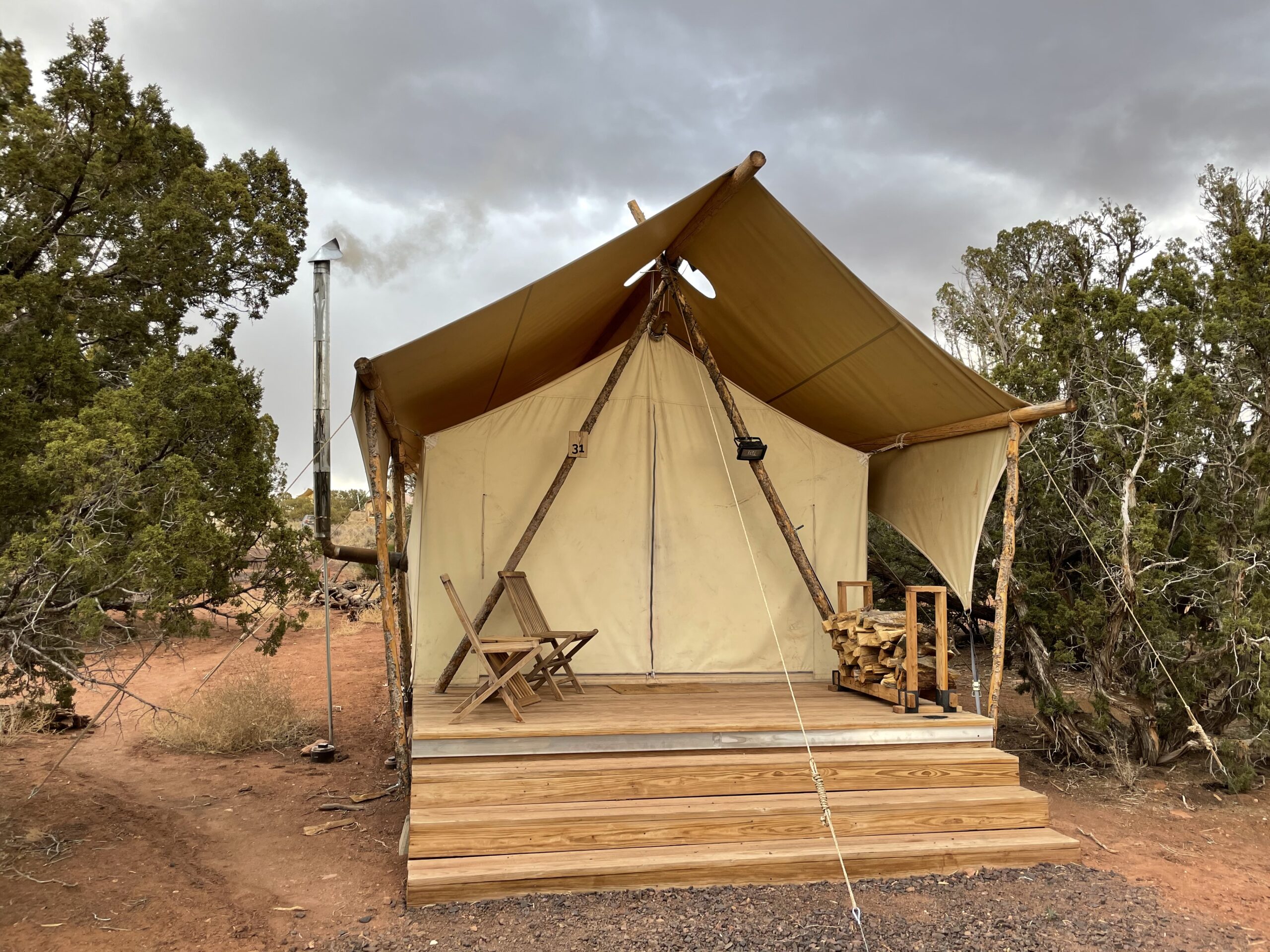 The next morning, how about sipping a gourmet coffee on your own private deck? Welcome to the Grand Canyon glamp ground vacation at Under Canvas. Located near Valle, Arizona, it’s just south of Grand Canyon National Park.