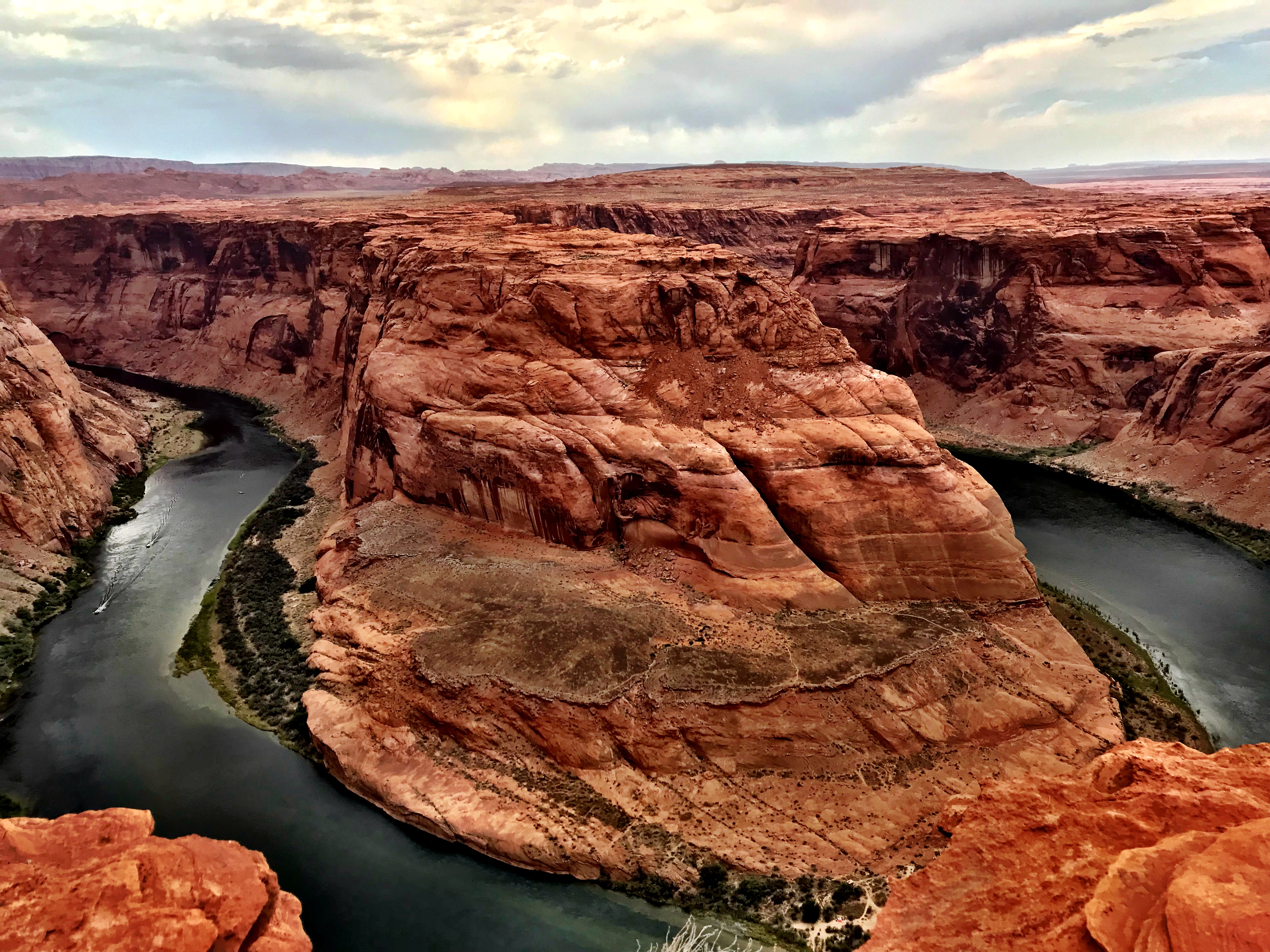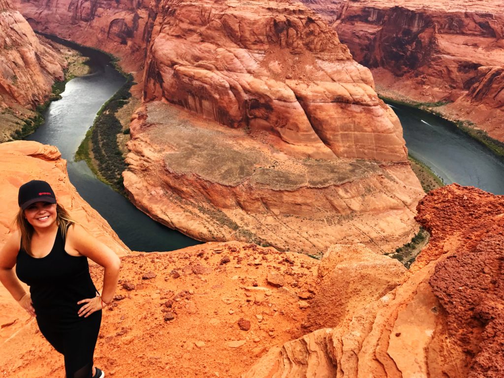 Es aquí en la ciudad de Page, Arizona donde encontraras al cañón llamado Horseshoe Bend o curva de la herradura, en medio de la nada caminando sobre terreno arenoso, de repente estarás frente a un cañón majestuoso rodeado por aguas color verde esmeralda que proveen del rio Colorado. Estar frente a este imponente cañón, te dejara sin habla y sin aliento,ya que tienes que caminar 2 millas sobre arena para llegar a él. Así que zapatos comodos y agua es vital para este recorrido.